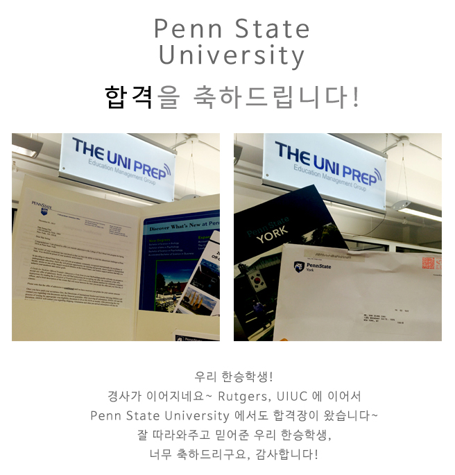[합격장] Penn State University 합격장이 왔습니다~